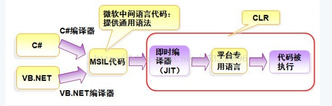 (2)统一数据类型和统一语言语法,原因是.net框架上有不止C#一种语言,其中还包括F#,V,VC++等,这些语言编写的程序其实最后都会在公共语言运行库这边翻译成统一的语言(中间语言IL),然后再与操作系统进行相关的交互。