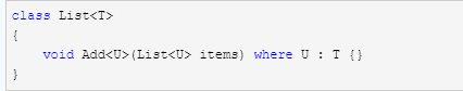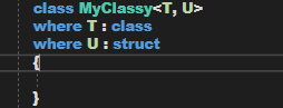 4.对于多个类型参数,每个类型参数都使用一个 where 子句。